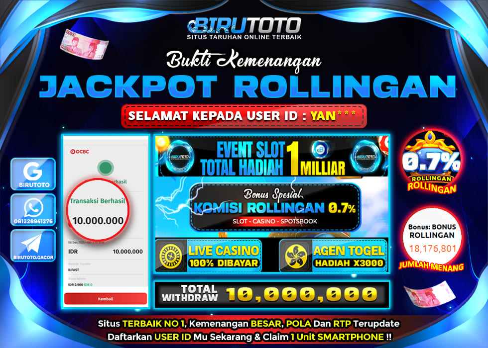 BIRUTOTO JACKPOT BONUS ROLLINGAN Rp.10.000.000 LUNAS