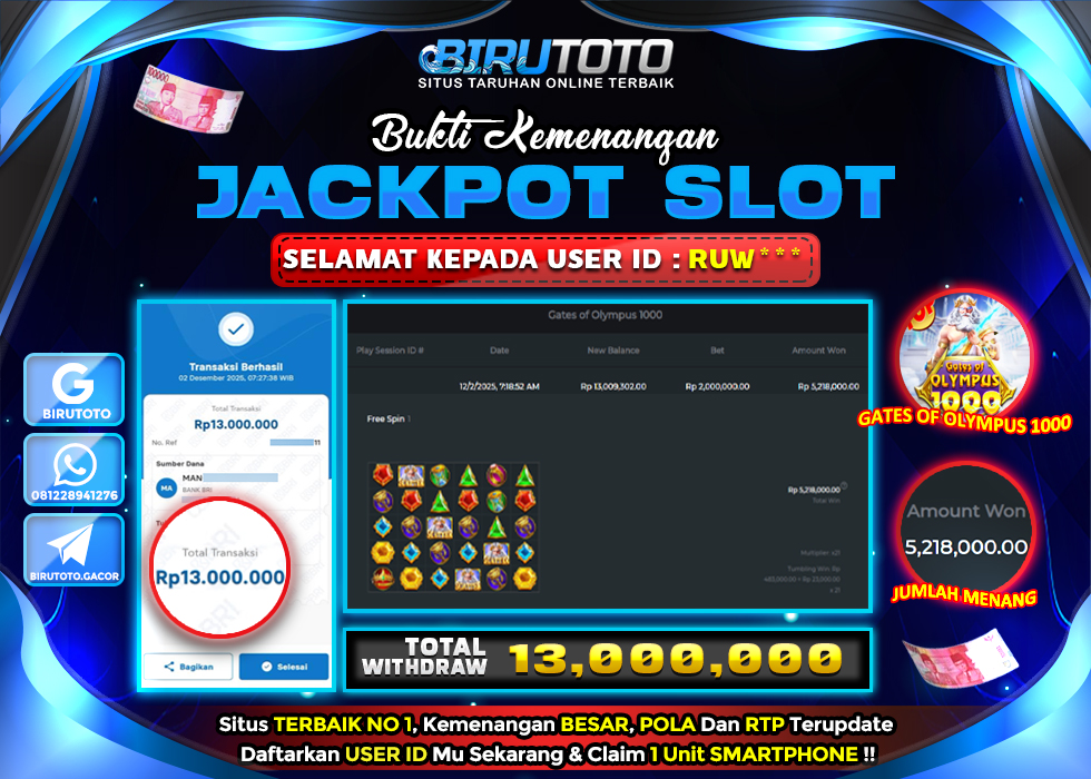 BIRUTOTO JACKPOT SLOT GATES OF OLYMPUS 1000 Rp.13.000.000 LUNAS