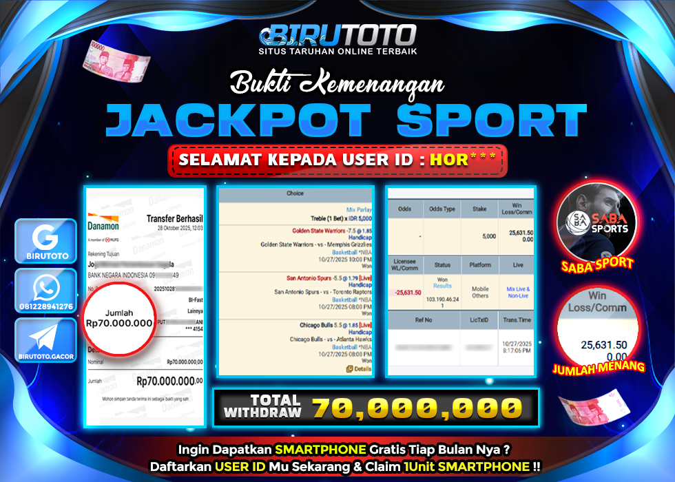 BIRUTOTO JACKPOT SABA SPORT MIX PARLAY Rp.70.000.000 LUNAS