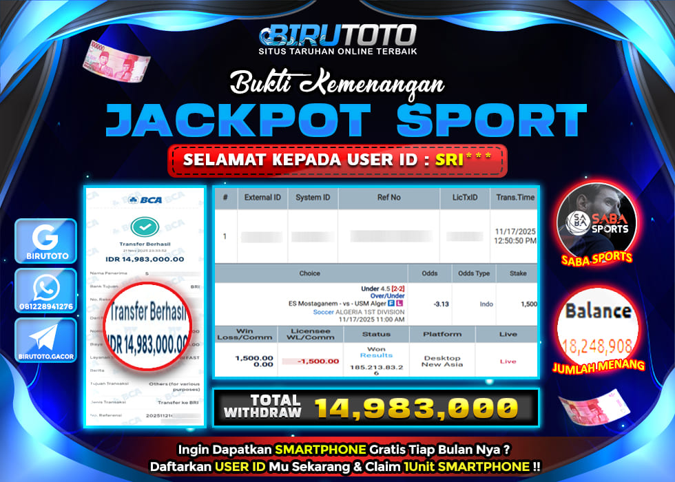 BIRUTOTO JACKPOT SABA SPOR Rp.14.983.000 LUNAS