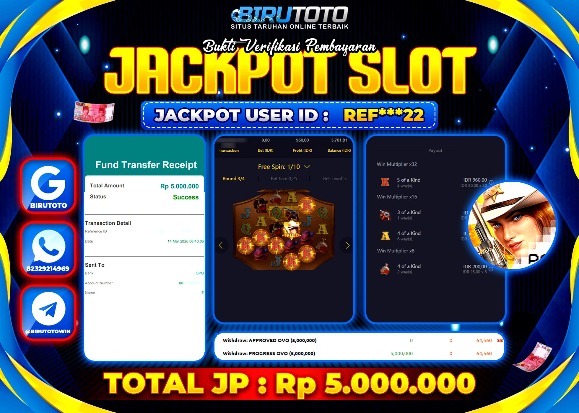 Selamat Kepada Member BIRUTOTO REF***22 Telah Jackpot Di SLOT WILD BOUNTY SHOWDOWN