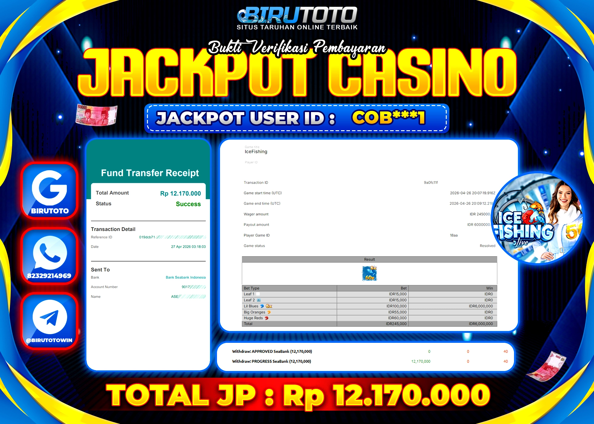 BIRUTOTO JACKPOT LIVE CASINO EVO ICE FISHING Rp.12.170.000 LUNAS