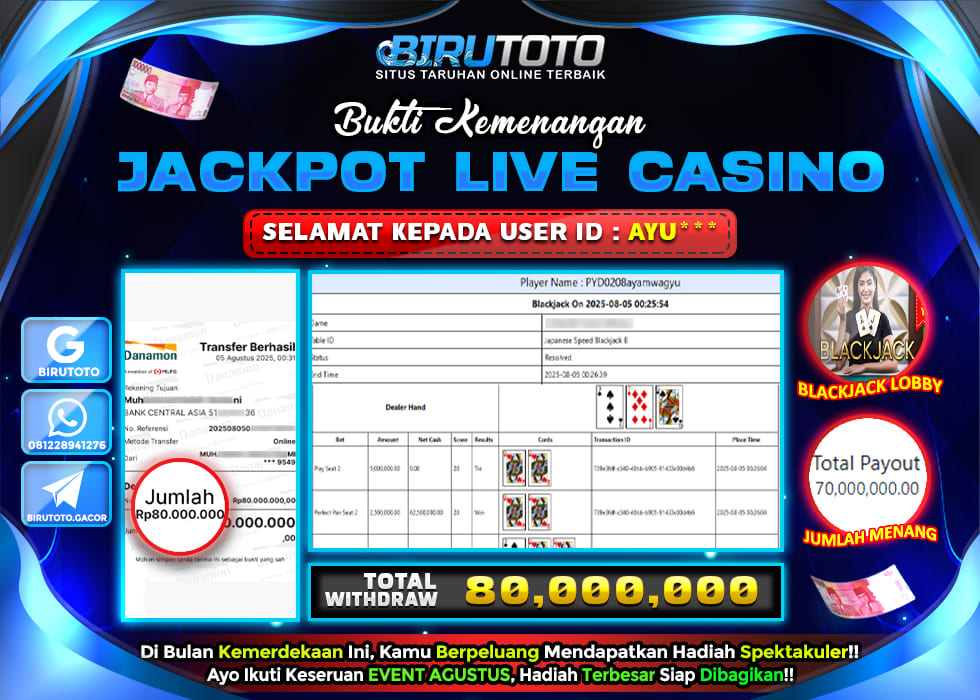 BIRUTOTO JACKPOT LIVE CASINO BLACKJACK LOBBY Rp.80.000.000 LUNAS
