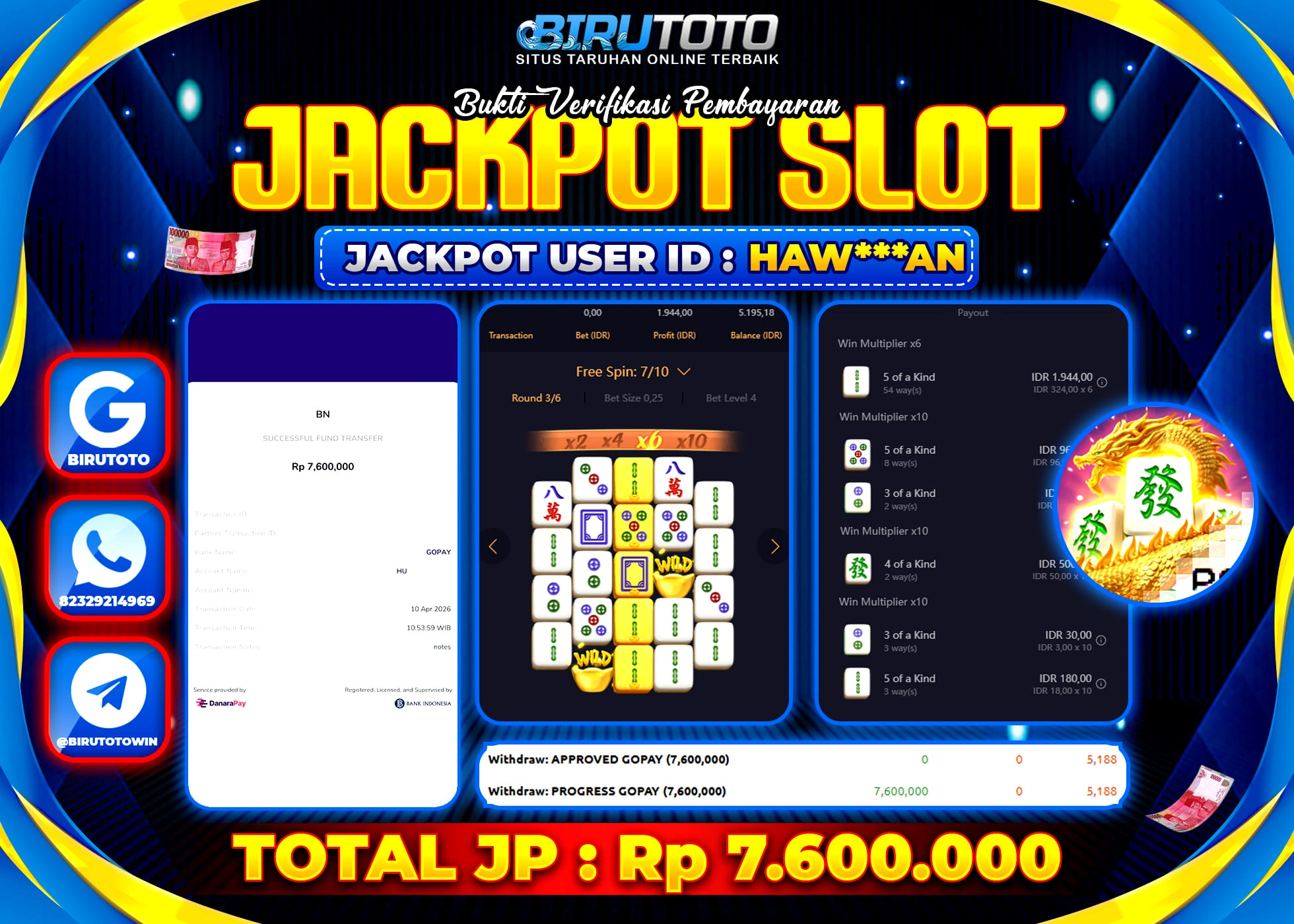 BIRUTOTO JACKPOT SLOT MAHJONG WAYS Rp.10.000.000 LUNAS