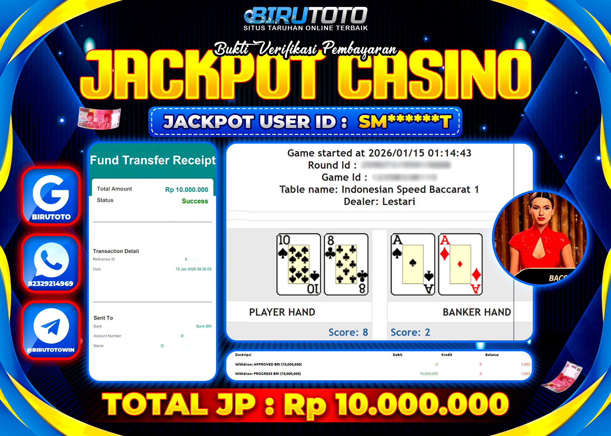 BIRUTOTO JACKPOT LIVE CASINO BACCARAT Rp.30.000.000 LUNAS