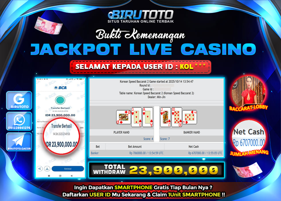 BIRUTOTO JACKPOT LIVE CASINO BACCARAT Rp.23.900.000 LUNAS