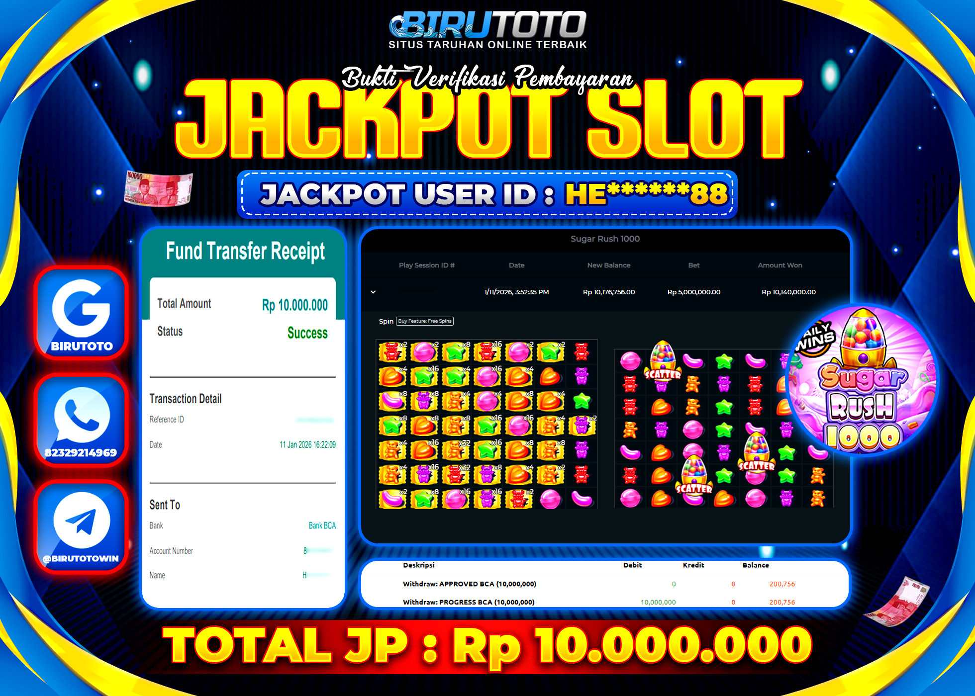 BIRUTOTO JACKPOT SLOT SUGAR RUSH 1000 Rp.10.000.000 LUNAS