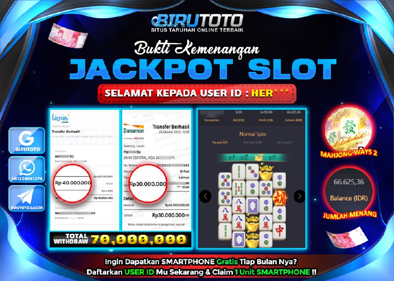 BIRUTOTO JACKPOT SLOT MAHJONG WAYS 2 Rp.70.000.000 LUNAS