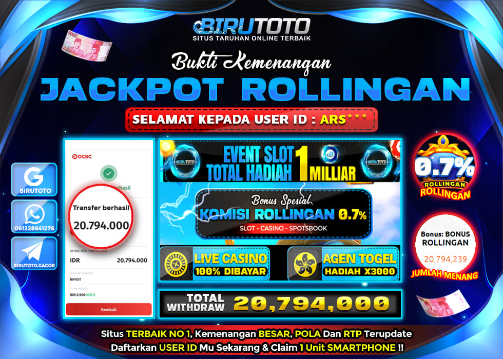 Selamat Kepada Member BIRUTOTO AR**** Telah Jackpot Di BONUS ROLLINGAN