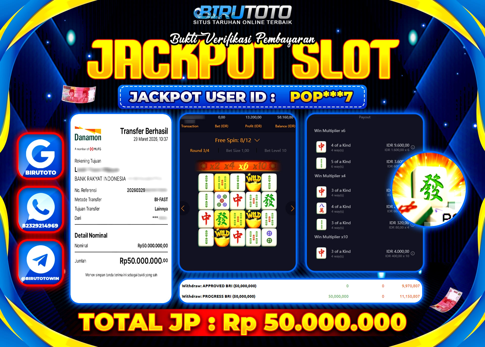 BIRUTOTO JACKPOT SLOT MAHJONG WAYS Rp.50.000.000 LUNAS