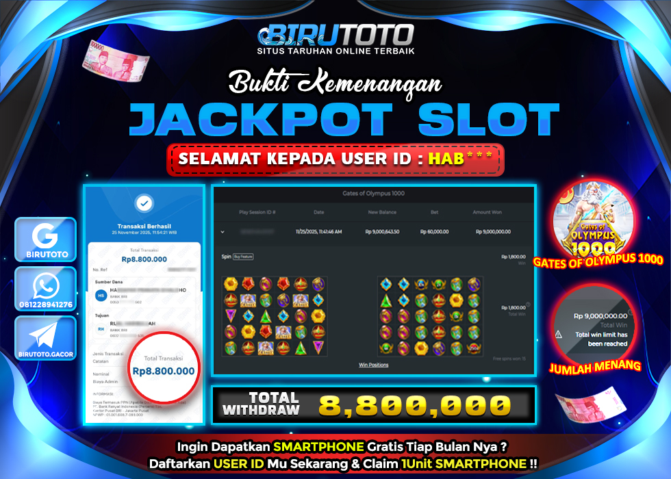 Selamat Kepada Member BIRUTOTO AS**** Telah Jackpot Di SLOT GATES OF OLYMPUS 1000