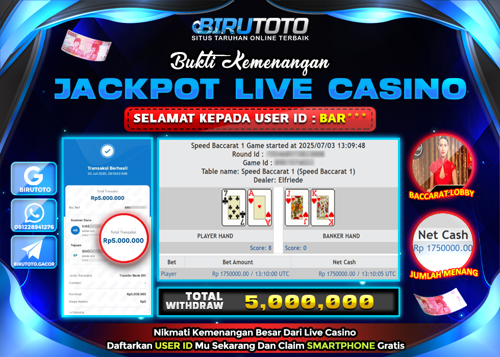 BIRUTOTO JACKPOT LIVE CASINO BACCARAT LOBBY Rp.5.000.000 LUNAS