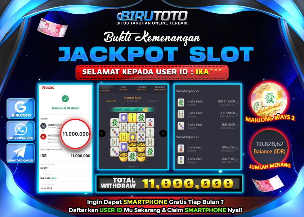 BIRUTOTO JACKPOT SLOT MAHJONG WAYS 2 Rp.11.000.000 LUNAS