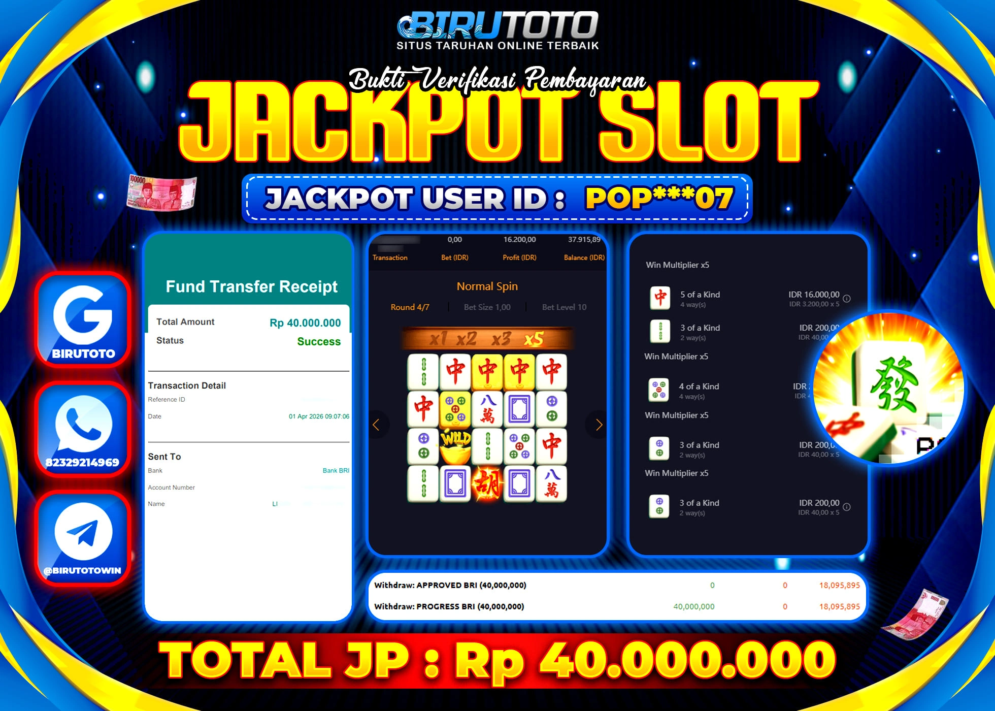 BIRUTOTO JACKPOT SLOT MAHJONG WAYS Rp.40.000.000 LUNAS