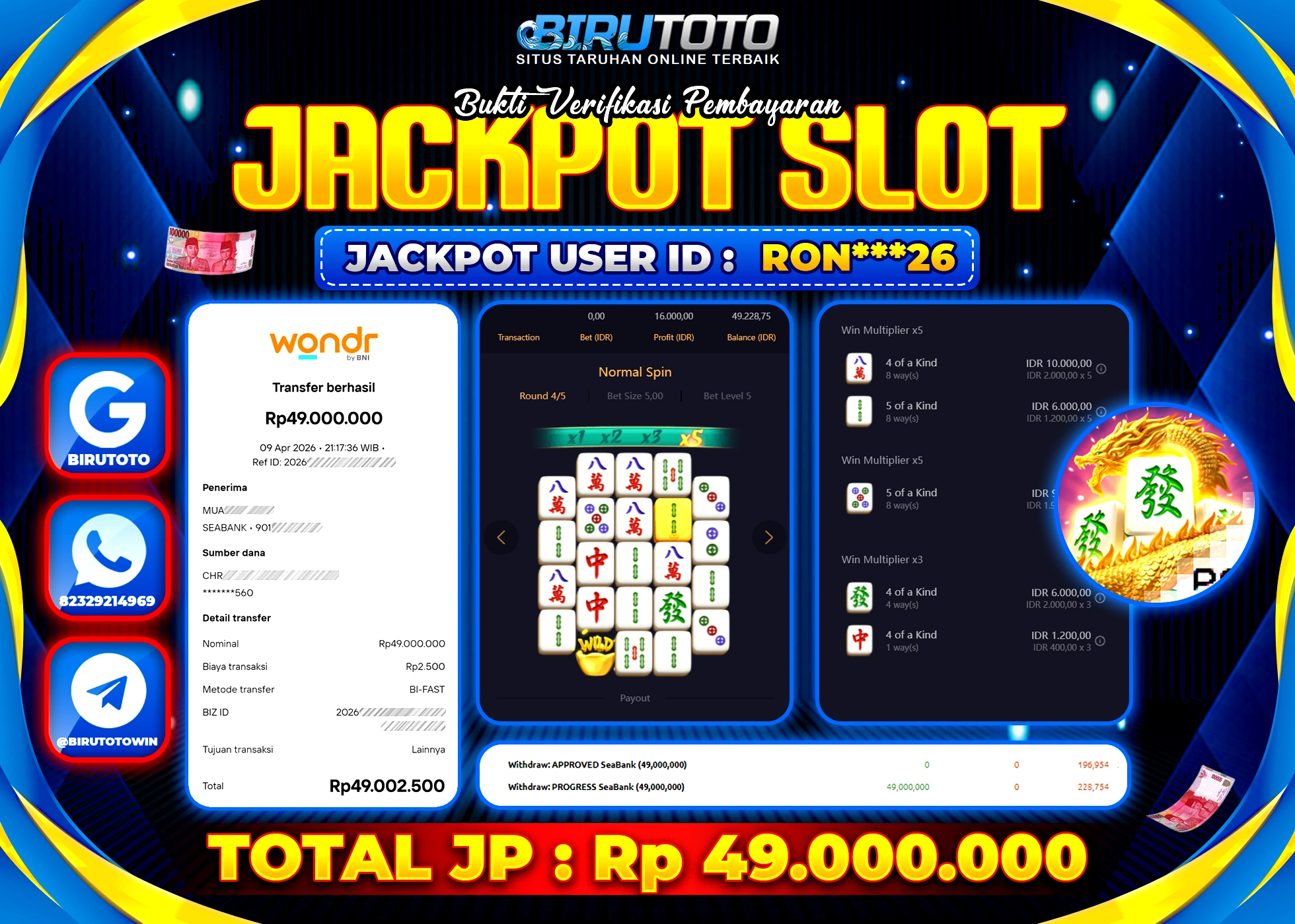 BIRUTOTO JACKPOT SLOT MAHJONG WAYS 2 Rp.49.000.000 LUNAS