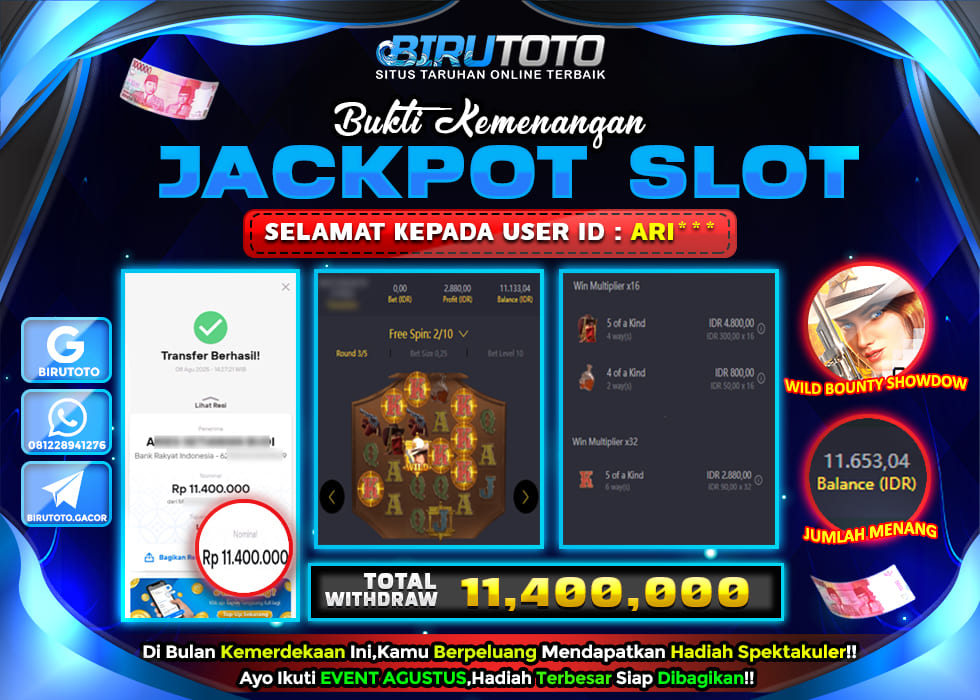 Selamat Kepada Member BIRUTOTO AR**** Telah Jackpot Di SLOT WILD BOUNTY SHOWDOWN
