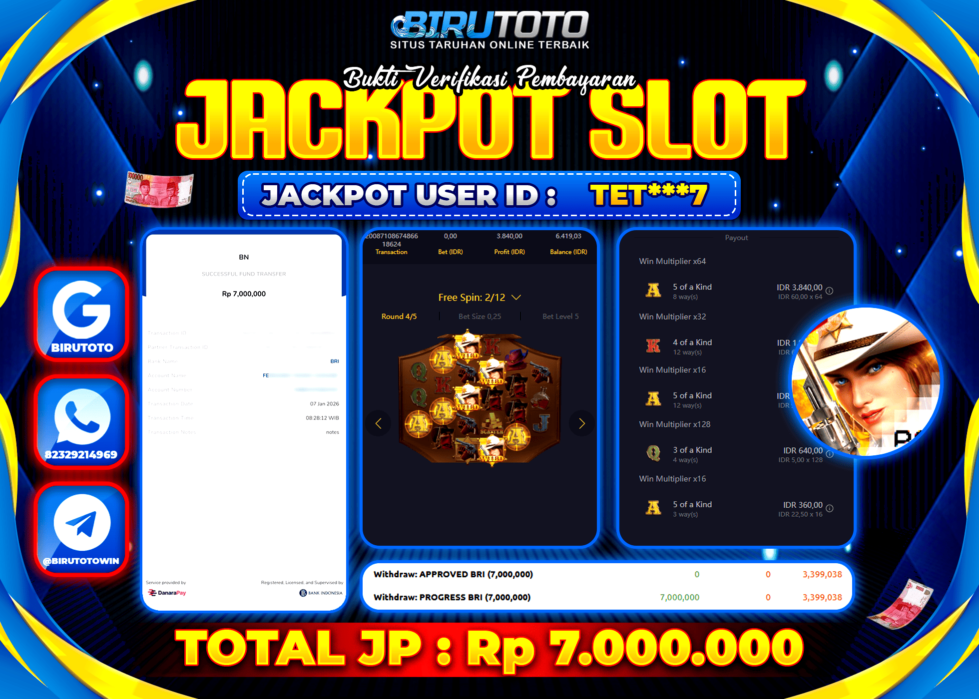 Selamat Kepada Member BIRUTOTO TET***7 Telah Jackpot Di SLOT WILD BOUNTY SHOWDOWN