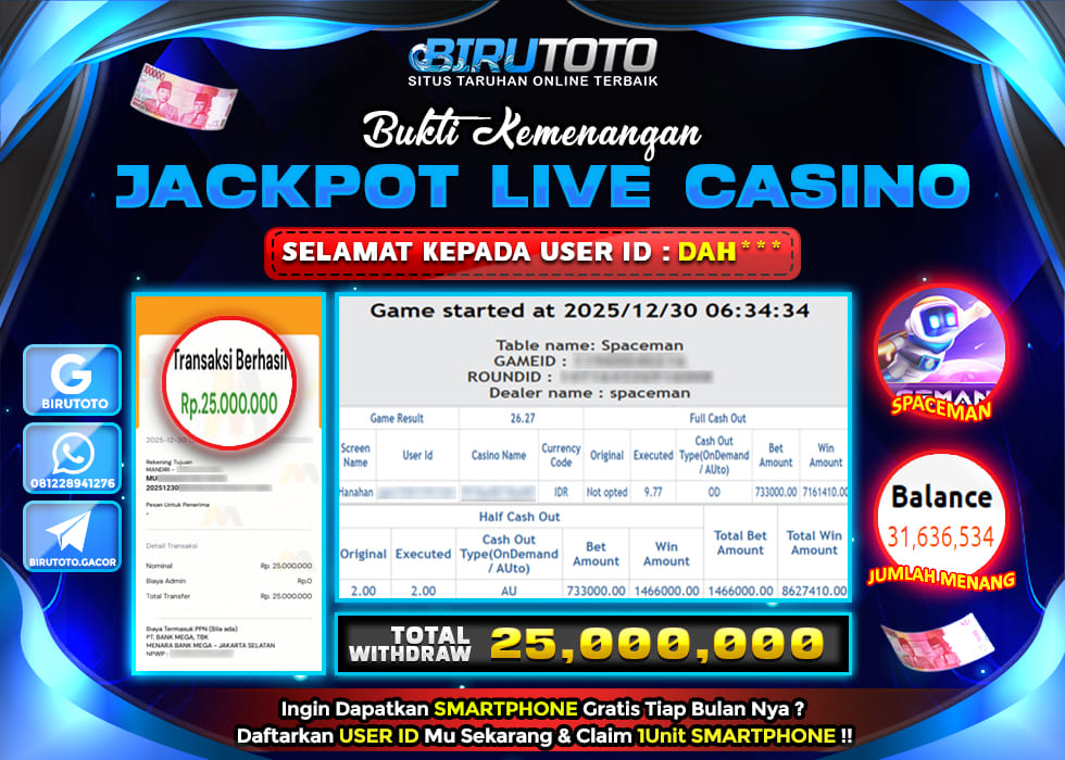 BIRUTOTO JACKPOT LIVE CASINO SPACEMAN Rp.25.000.000 LUNAS