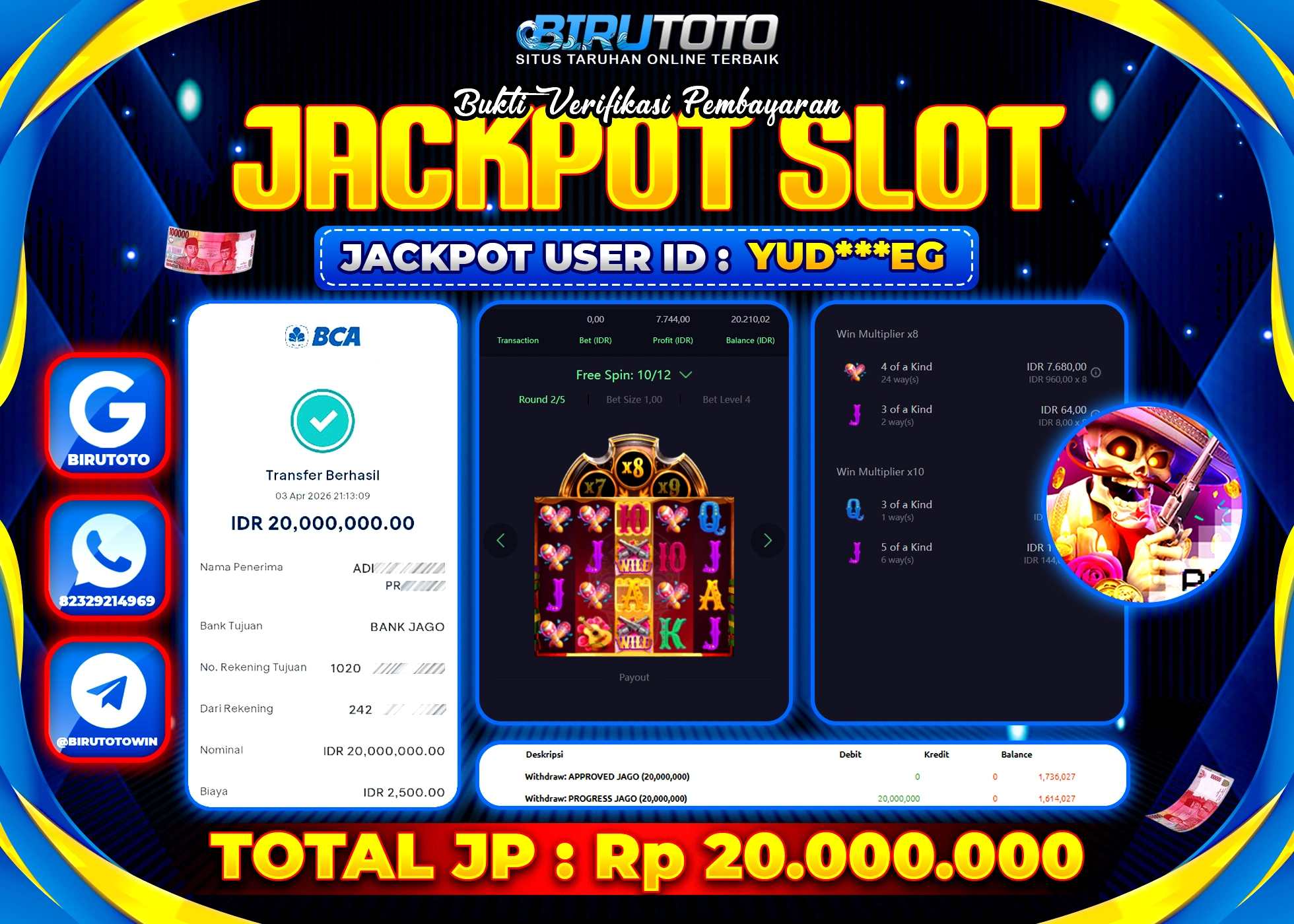 BIRUTOTO JACKPOT SLOT WILD BANDITO Rp.20.000.000 LUNAS
