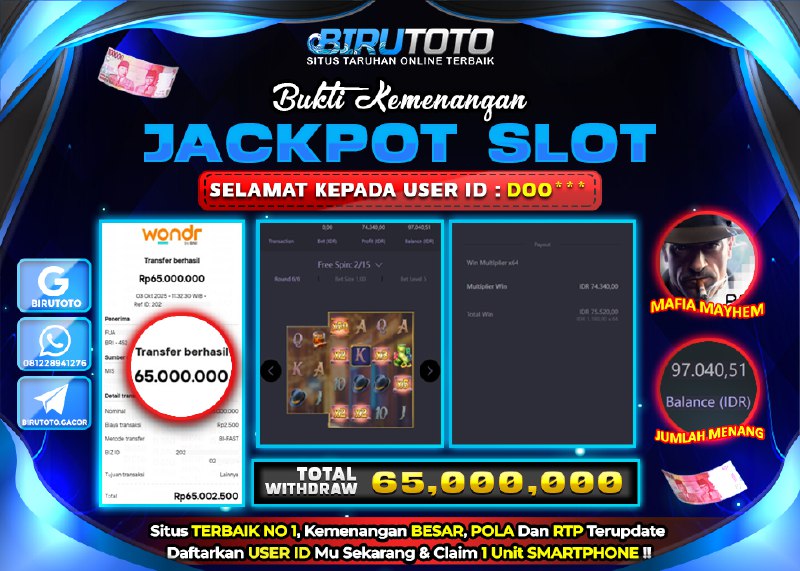 BIRUTOTO JACKPOT SLOT MAFIA MAYHEM Rp.65.000.000 LUNAS