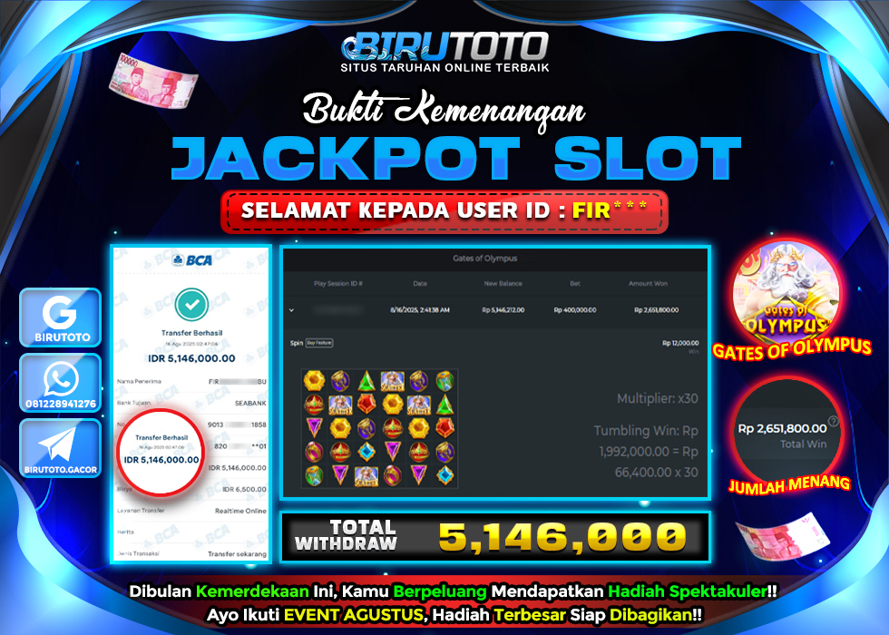 BIRUTOTO JACKPOT SLOT GATES OF OLYMPUS Rp.5.146.000 LUNAS