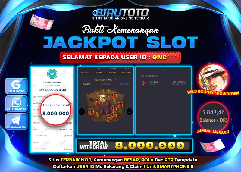 Selamat Kepada Member BIRUTOTO QN**** Telah Jackpot Di SLOT WILD BOUNTY SHOWDOWN