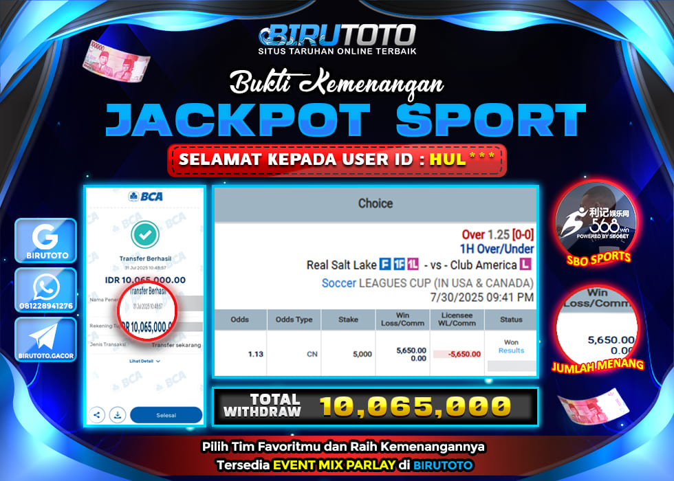 BIRUTOTO JACKPOT SPORT SBO SPORTS Rp.10.065.000 LUNAS
