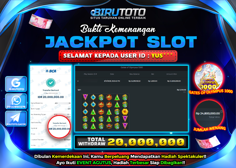BIRUTOTO JACKPOT SLOT GATES OF OLYMPUS 1000 Rp.20.000.000 LUNAS