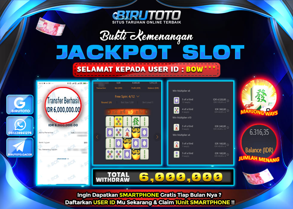 BIRUTOTO JACKPOT SLOT MAHJONG WAYS Rp.6.000.000 LUNAS