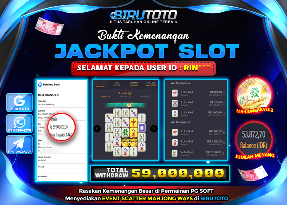 Selamat Kepada Member BIRUTOTO RI**** Telah Jackpot Di SLOT MAHJONG WAYS 2