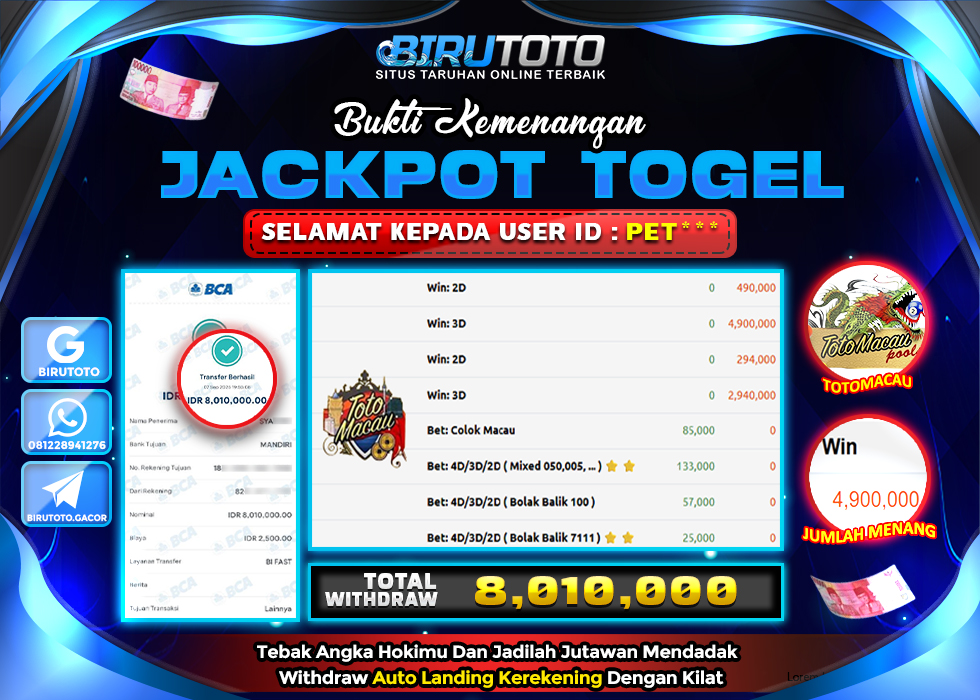BIRUTOTO JACKPOT TOGEL TOTOMACAU Rp.8.010.000 LUNAS
