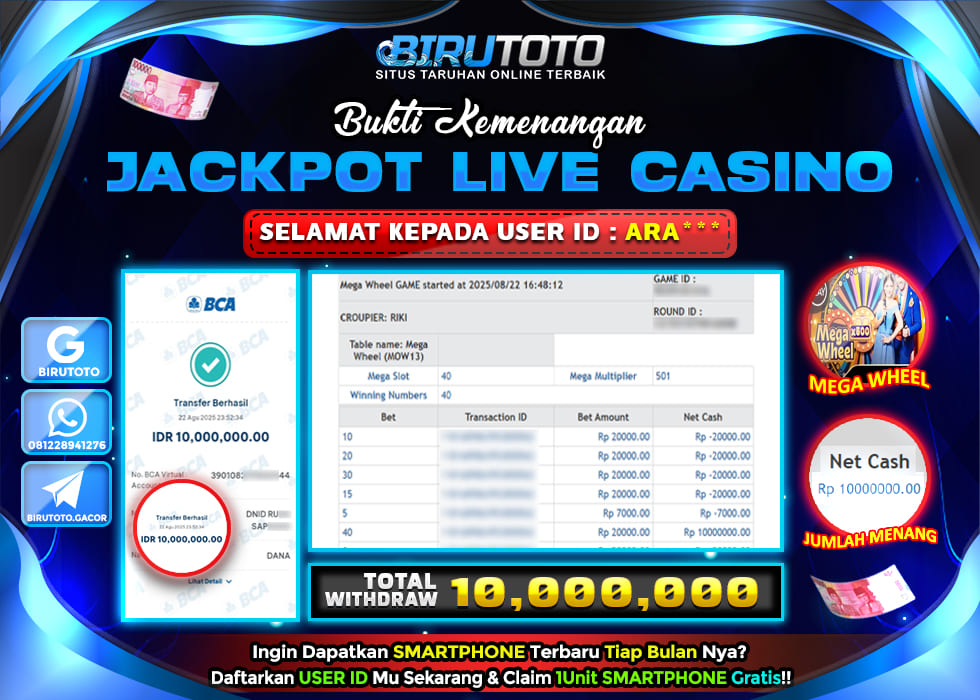 Selamat Kepada Member BIRUTOTO AR**** Telah Jackpot Di LIVE CASINO MEGA WHEEL