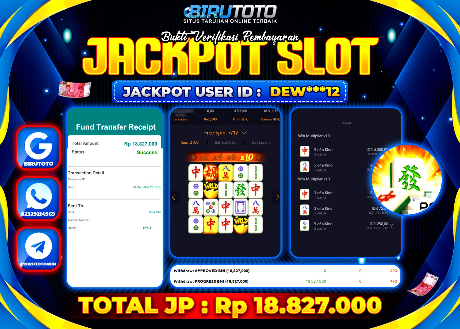 BIRUTOTO JACKPOT SLOT MAHJONG WAYS Rp.18.827.000 LUNAS