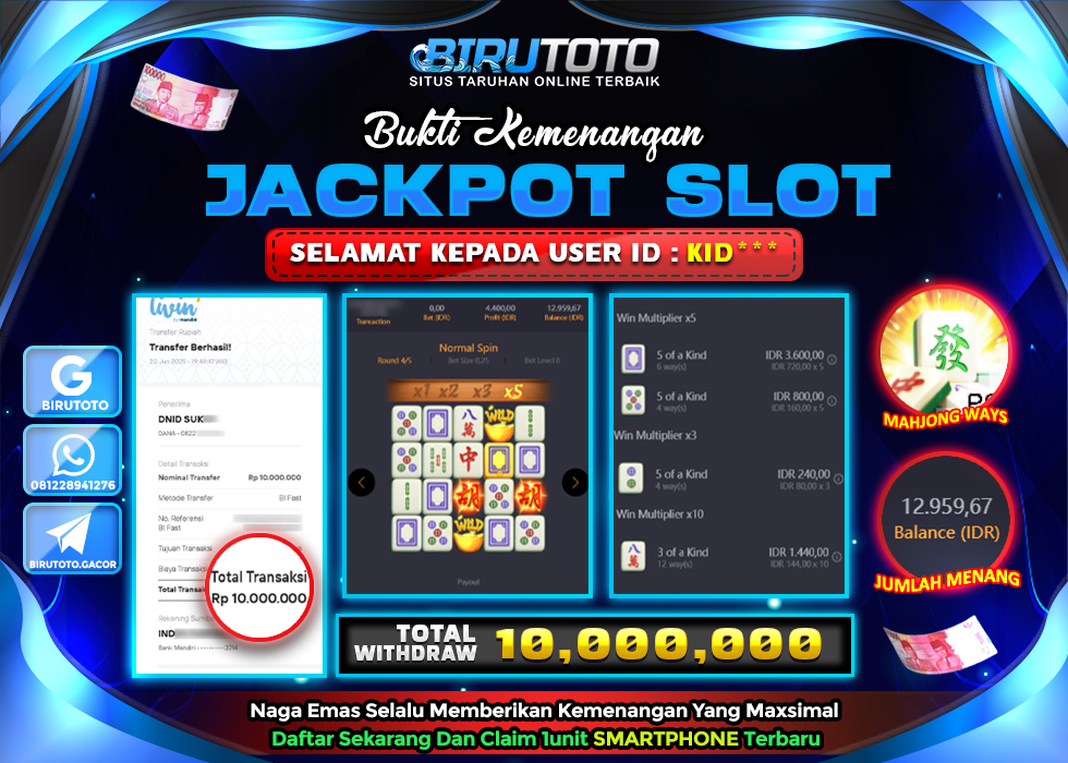 Selamat Kepada Member BIRUTOTO KI**** Telah Jackpot Di SLOT MAHJONG WAYS