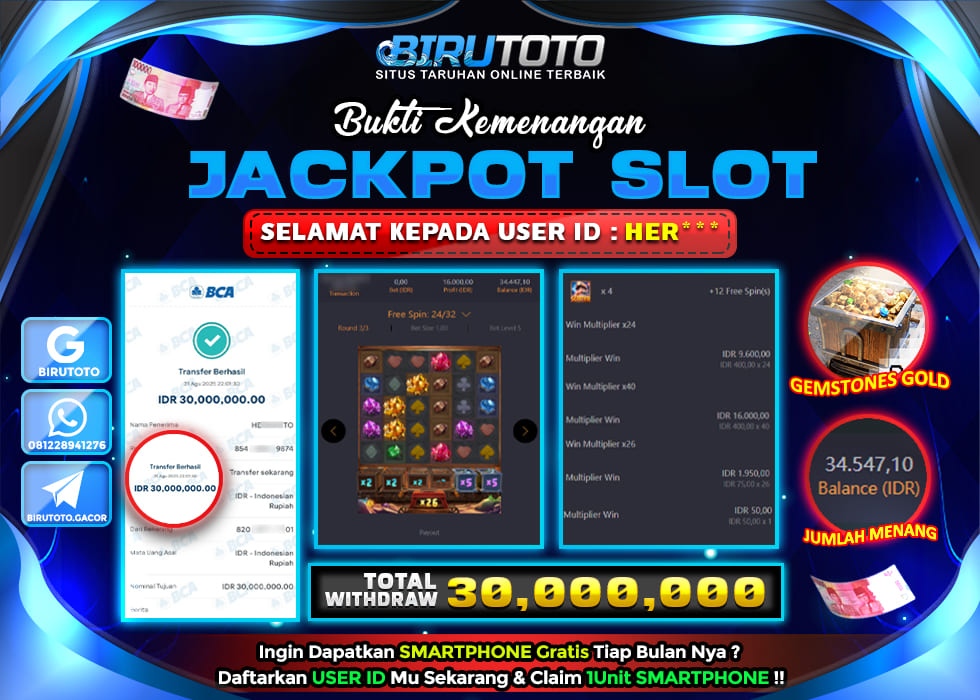 BIRUTOTO JACKPOT SLOT GEMSTONES GOLD Rp.30.000.000 LUNAS