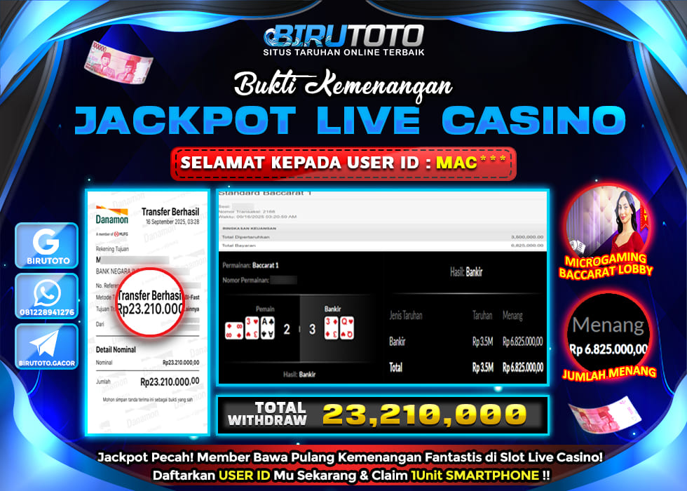 BIRUTOTO JACKPOT LIVE CASINO BACCARAT Rp.23.210.000 LUNAS