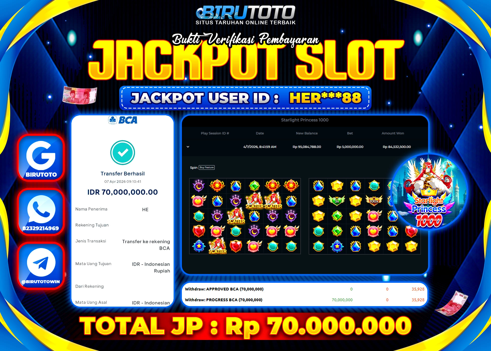 BIRUTOTO JACKPOT SLOT STARLIGHT PRINCESS 1000 Rp.70.000.000 LUNAS