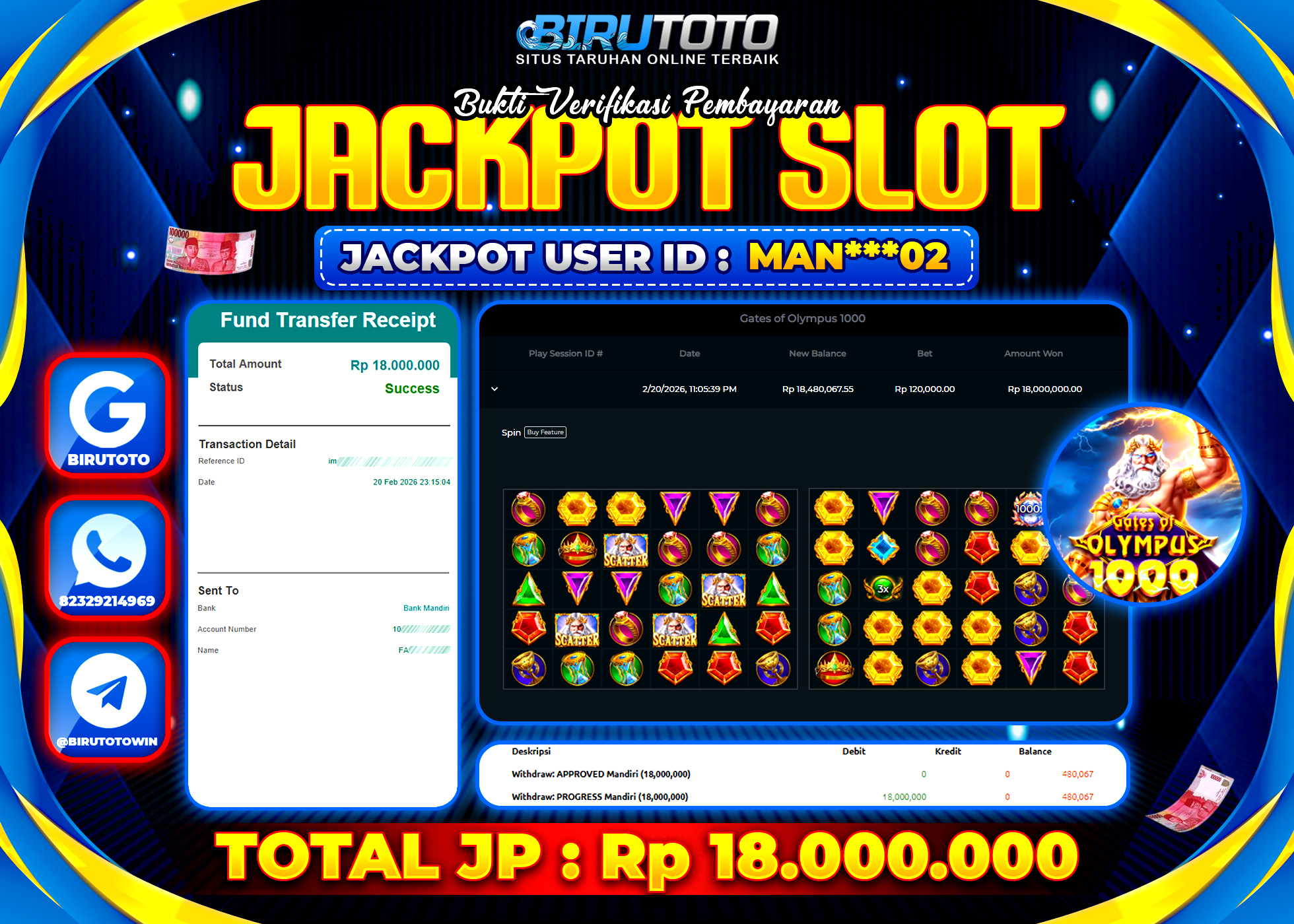 BIRUTOTO JACKPOT SLOT GATES OF OLYMPUS 1000 Rp.18.000.000 LUNAS