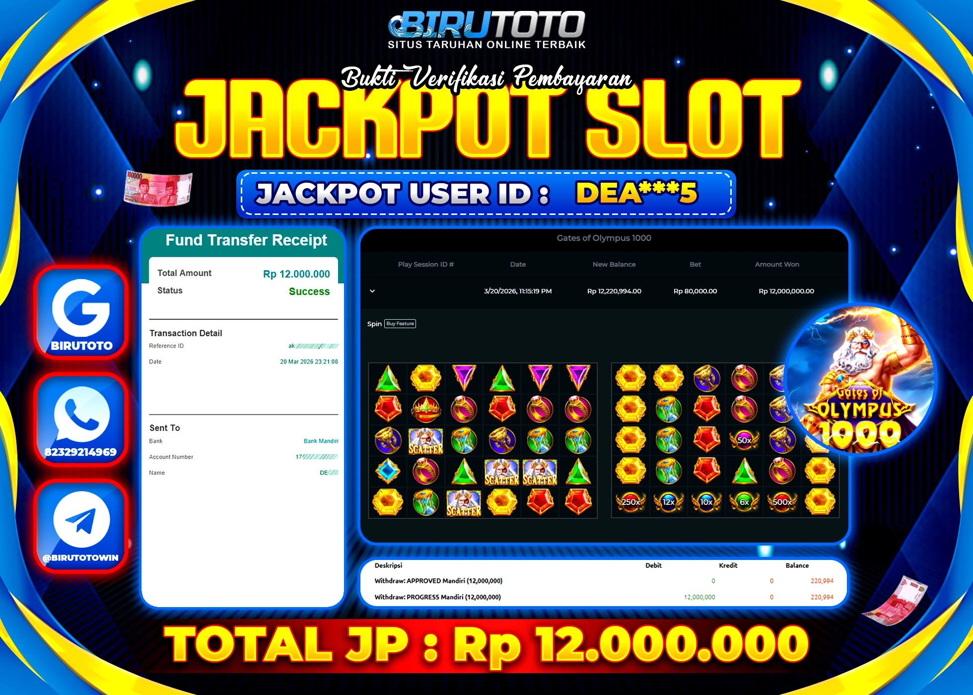 BIRUTOTO JACKPOT SLOT GATES OF OLYMPUS 1000 Rp.12.000.000 LUNAS