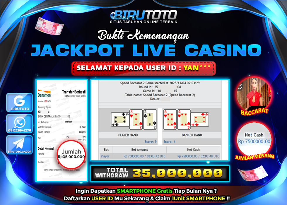 BIRUTOTO JACKPOT LIVE CASINO BACCARAT Rp.35.000.000 LUNAS