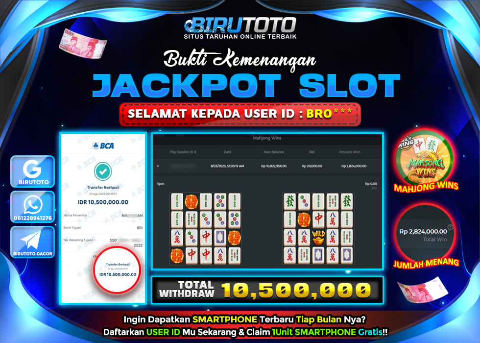 BIRUTOTO JACKPOT SLOT MAHJONG WINS Rp.10.500.000 LUNAS