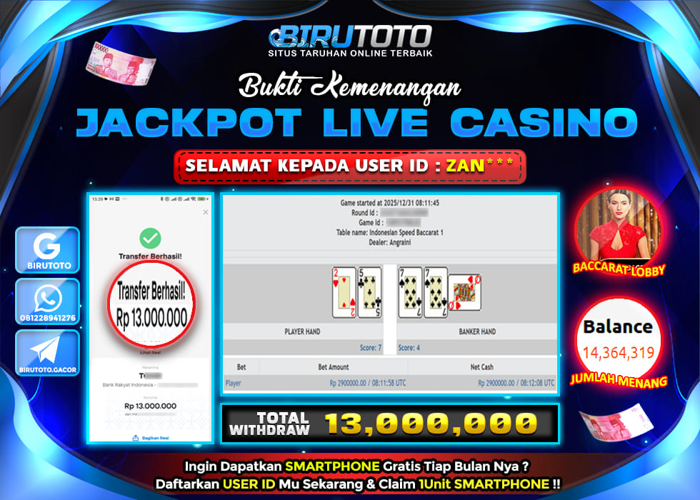 Selamat Kepada Member BIRUTOTO ZAN***23 Telah Jackpot Di LIVE CASINO BACCARAT
