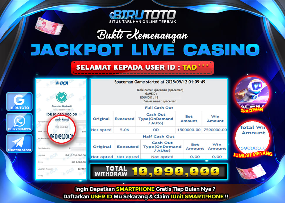 BIRUTOTO JACKPOT LIVE CASINO SPACEMAN Rp.10.090.000 LUNAS
