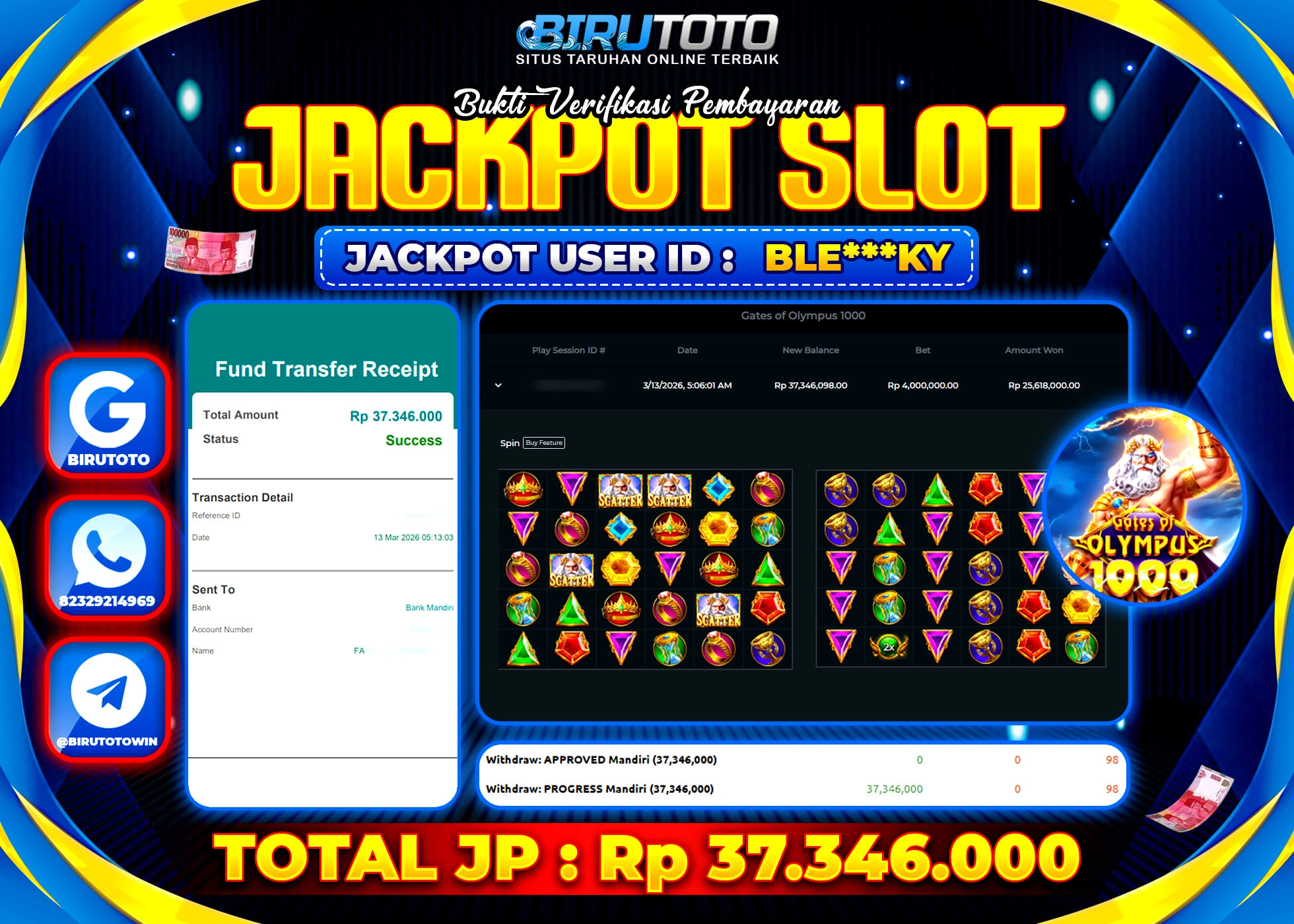 Selamat Kepada Member BIRUTOTO BLE***KY Telah Jackpot Di SLOT GATES OF OLYMPUS 1000