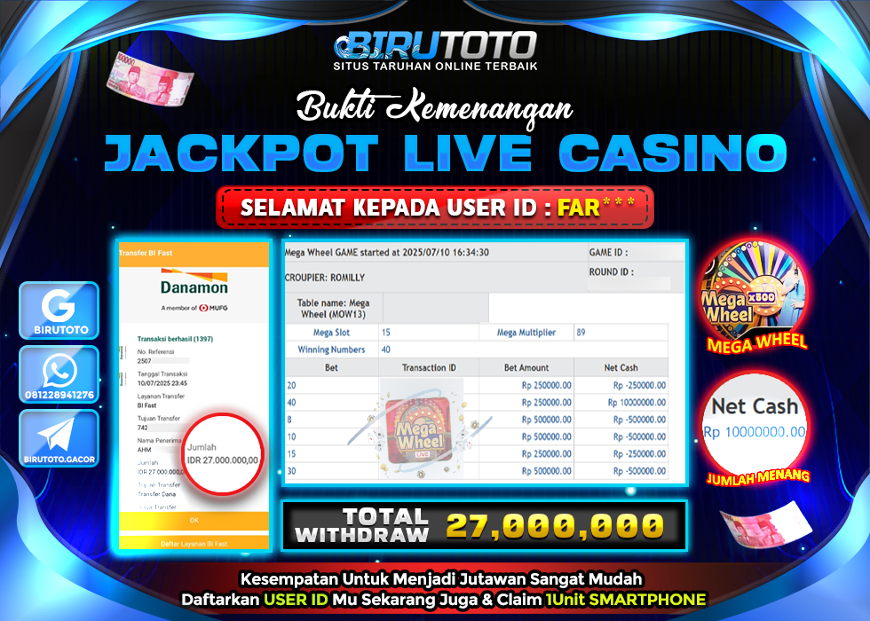 BIRUTOTO JACKPOT LIVE CASINO Rp.27.000.000 LUNAS