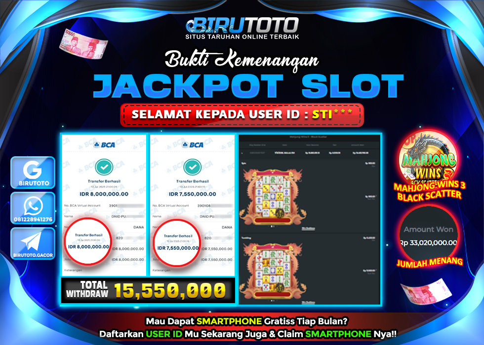 BIRUTOTO JACKPOT SLOT MAHJONG WINS 3 - BLACK SCATTER Rp.15.550.000 LUNAS