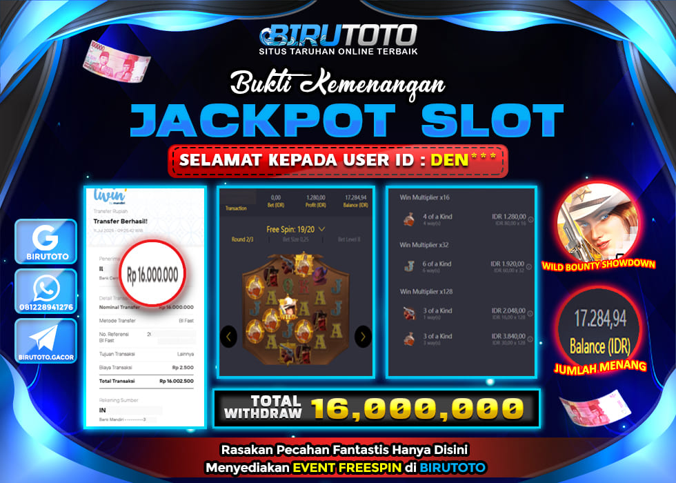 BIRUTOTO JACKPOT SLOT WILD BOUNTY SHOWDOWN Rp.16.000.000 LUNAS