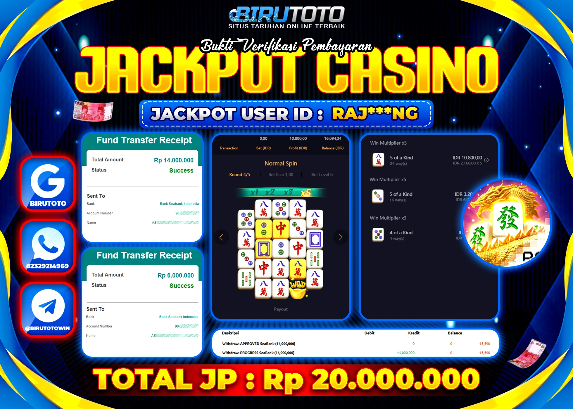 Selamat Kepada Member BIRUTOTO RAJ***NG Telah Jackpot Di SLOT MAHJONG WAYS 2