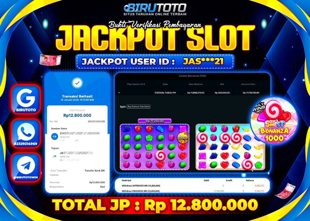 BIRUTOTO JACKPOT SLOT SWEET BONANZA 1000 Rp.12.800.000 LUNAS