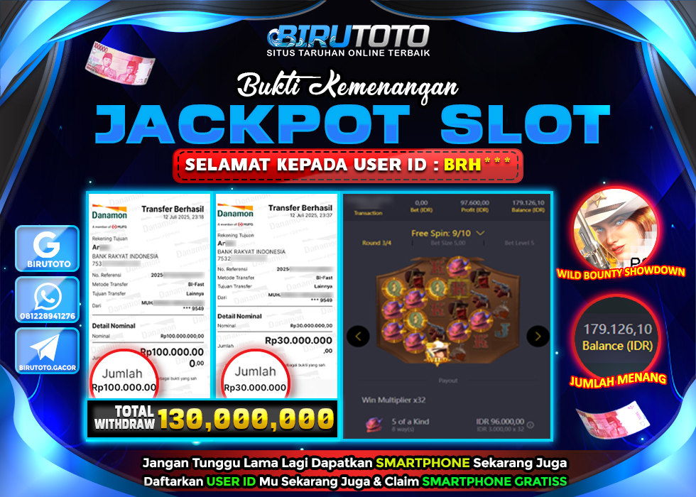 Selamat Kepada Member BIRUTOTO BR**** Telah Jackpot Di SLOT WILD BOUNTY SHOWDOWN